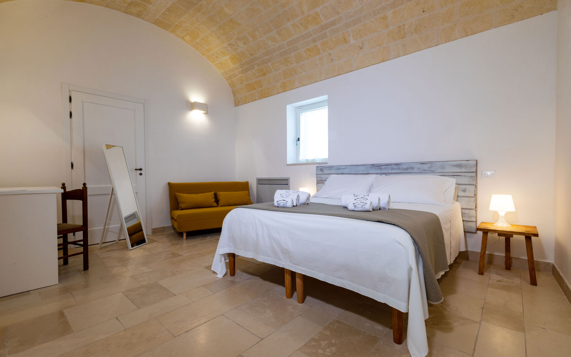 Ogni camera della masseria è diversa, ma tutte condividono la stessa filosofia:
