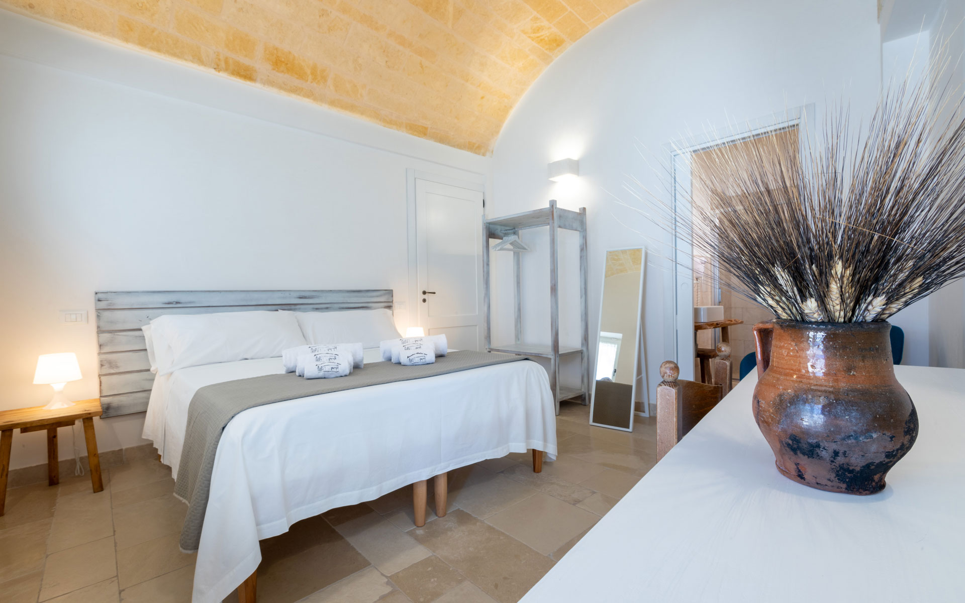 Le camere di Masseria Abadia Uno sono progettate per offrire equilibrio.